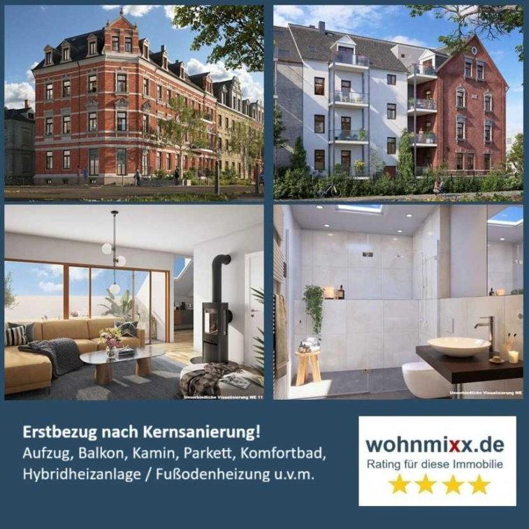 Das denkmalgeschützte Gebäude wurde im Jahr 2025 vollständig erneuert, wobei lediglich die historischen Außenwände, tragende Innenwände und Treppen erhalten blieben. Neue Stahlbetondecken, ein neuer Dachstuhl und weitere umfangreiche Eingriffe in die Gebäudesubstanz sind Belege einer echten Kernsanierung, welche durch Fachfirmen aus Chemnitz und Umgebung durchgeführt wurde. Entstanden sind Wohnungen mit hohem Komfort im Neubaustandard, deren Bauausführung und Ausstattung hohen Qualitätsansprüchen genügt.
