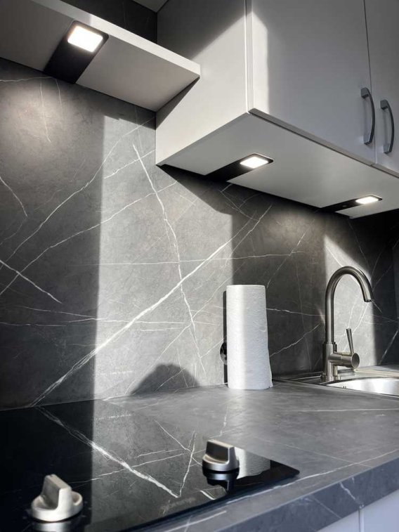 Im Zuge der Modernisierung wurden folgende Arbeiten vorgenommen: neuer moderner Vinyl Fußboden verlegt, komplett frisch tapeziert und gestrichen, Austausch vom WC, Waschbecken, Spiegel, neue Armaturen und Einbau einer neuen Einbauküche.