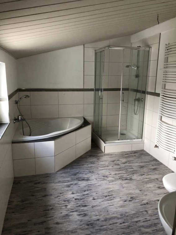 •Großes Tageslichtbad mit Badewanne, Dusche und WC