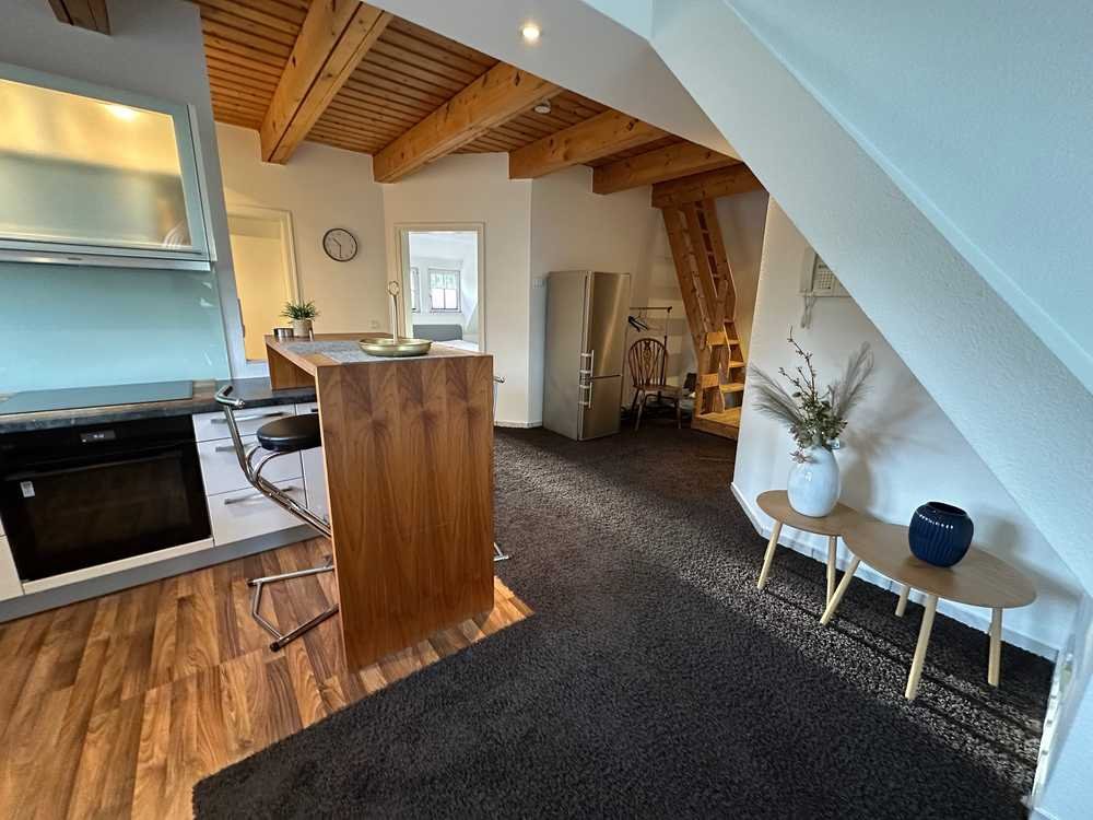 Einzigartiger Charme in einem modernen Eichenfachwerkhaus. Lage und Ausstattung wie im Urlaub. Die lichtdurchflutete und möblierte 3-Zimmer DG-Wohnung (75 qm) lädt zum Träumen und Entspannen ein. Im Winter genießen Sie die heimelige Atmosphäre mit viel Holz, hellen Flächen und natürlichen Farben. Vom Küchenfenster und vom 12 qm großen Balkon haben Sie einen herrlichen Blick über Obstbäume, Kräutergarten und Bootssteg auf einen kristallklaren Wasserlauf.