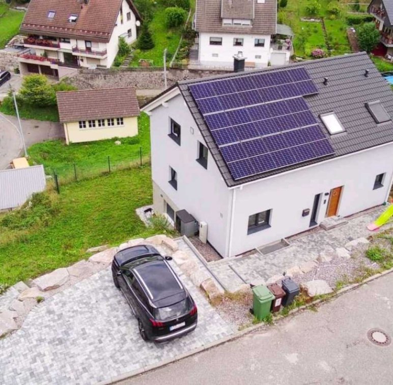 Das Haus verfügt über einen einladenden und sehr großen Balkon mit Blick auf das Dorf und dem Schwarzwald und bietet einen Zugang zum Garten.