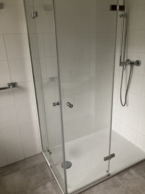 Das Badezimmer wurde erst vor 2,5 Jahren erneuert mit moderner Duschkabine und zwei Waschbecken.