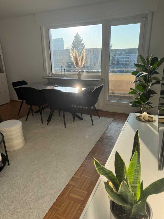 Die helle und gepflegte Dachgeschosswohnung (Flachdach) überzeugt durch großzügige Fensterfronten und einen sonnigen, großen Balkon mit herrlichem Weitblick. Dank der Süd-/Südwest-Ausrichtung genießt man den ganzen Tag über viel natürliches Licht, was sowohl den Wohnraum als auch den Außenbereich angenehm warm und freundlich wirken lässt.