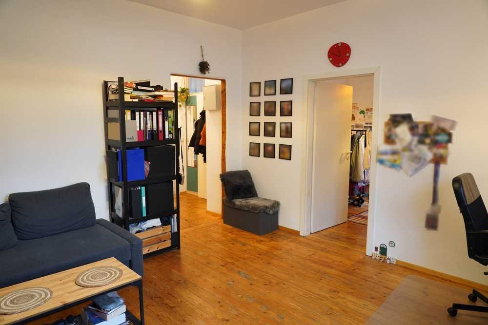 Das Wohnzimmer ist ein Durchgangszimmer zum Schlafzimmer.
