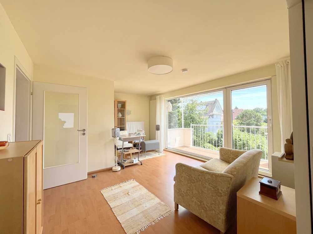 Der Wohnraum liegt auf der Südseite hat einen Balkon.