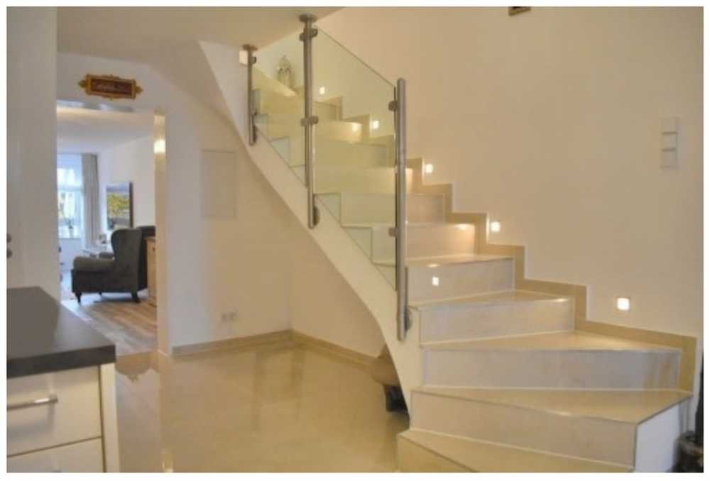 - Die Treppe in das DG mit hochwertigem Belag aus Spanien und Stufenbeleuchtung
