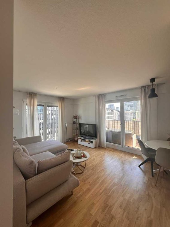 Zimmer: Die Wohnung ist ca. 55 m2 groß, besteht aus 2 Zimmern + Balkon + WC + Diele. Insbesondere die Terasse mit Skyline Blick ist hier hervorzuheben.