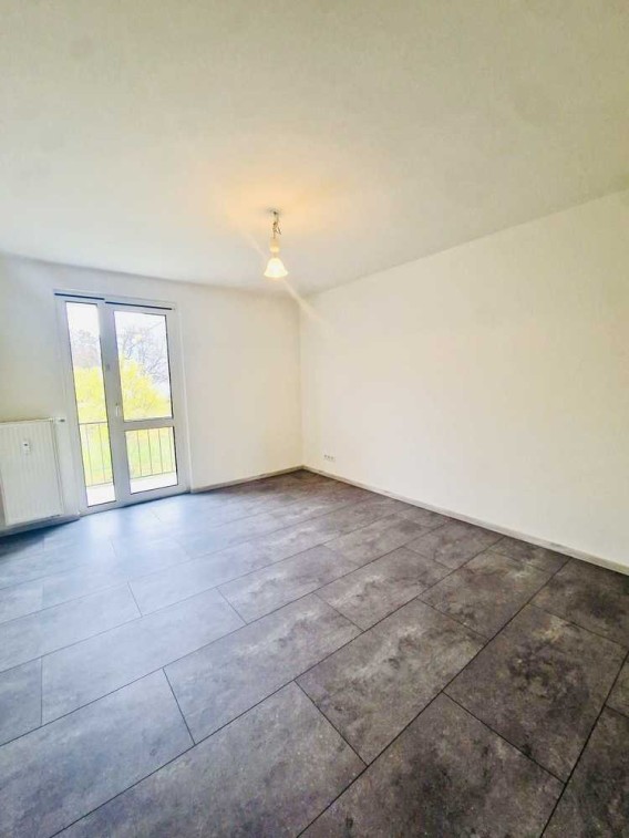 Das helle Wohnzimmer bietet direkten Zugang zum Balkon, der ideal zum Entspannen im Freien ist. Das Schlafzimmer bietet ausreichend Platz für eine individuelle Einrichtung.