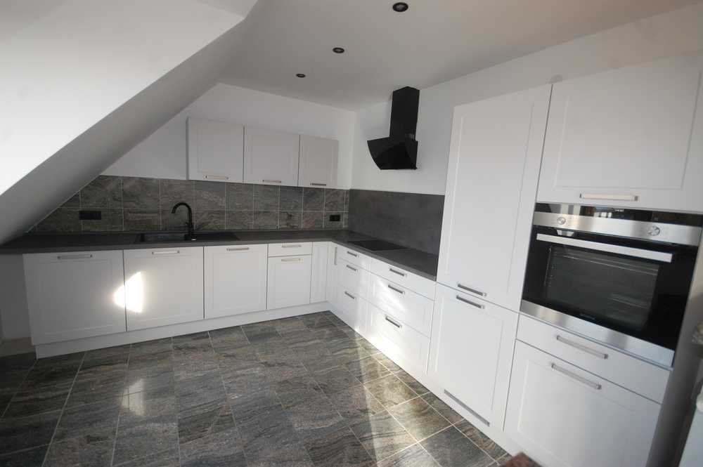 Anschließend öffnet sich der große, helle Wohnbereich mit Zugang zum Balkon und einer modernen, neuen Einbauküche, die mit einem offenen Wohnkonzept harmonisch verbunden ist.