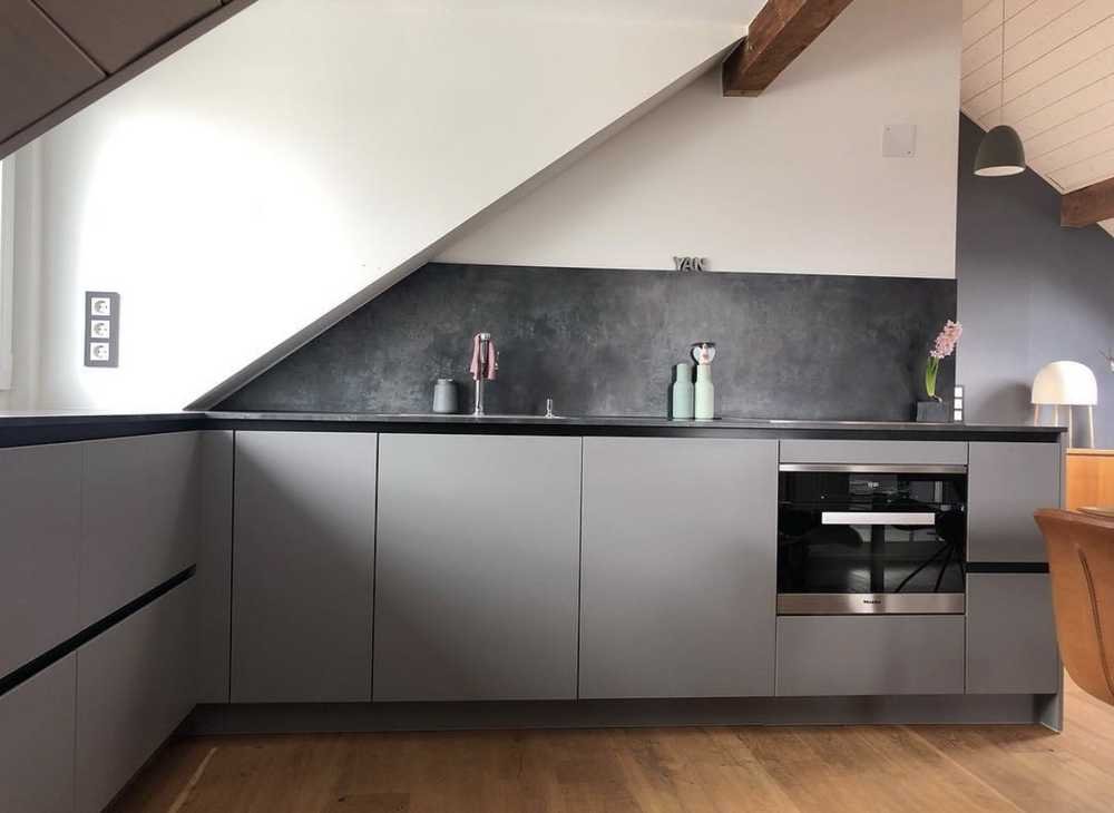 Helle 2-Zimmer-DG-Wohnung (70 m²) mit großer überdachter Dachterrasse und Klimaanlage. Hochwertiger Eichenparkettboden, modernes Bad, Einbauküche mit Miele-Markengeräten (Dampfgarer/Ofen-Kombination, Induktionskochfeld, Spülmaschine). Küche sollte für 6.000 € übernommen werden.