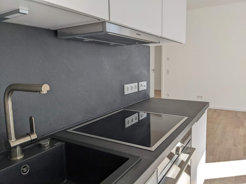 Das Interieur genügt höchsten Ansprüchen: Edles Eichenparkett verleiht den Räumen Wärme, während der offene Wohnbereich fließend in die hochwertige Siemens-Einbauküche übergeht – der perfekte Ort für kulinarische Abende.
