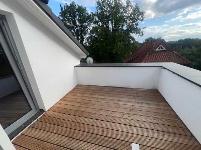 Die helle Wohnung im Dachgeschoß mit ca. 76 m² Wohnfläche, die Grundfläche ist noch größer, hat durch die Schrägen ein besonders gemütliches Ambiente. Die schicke, moderne Wohnung mit Fußbodenheizung ist mit Design-Fußboden, Einbauküche sowie einem Voll-Bad mit Wanne und Dusche und einem Waschmaschinen/Trocknerbereich ausgestattet. Sie können die Sonnenstunden auf der 7,5 m² großen, privaten Dachterrasse genießen. Ein Pkw-Stellplatz kann für eine Monatsmiete von EUR 20,00 angemietet werden. Die monatliche Nebenkostenvorauszahlung beträgt inkl. Heizung und Wasser nur EUR 215,00. Telefon, Glasfaser und Strom schließt der Mieter direkt mit den Versorgern ab. Es ist eine Mietsicherheit von 3 Kaltmieten zu hinterlegen.