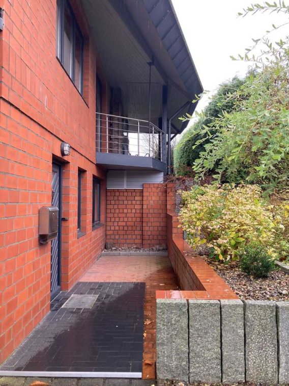 Die Wohnung befindet sich in einem Einfamilienhaus im Souterrain mit eigenem ebenerdigen Eingang und einer kleinen Terrasse. Weiter bietet sie eine geräumige Diele, ein Duschbad, ein Wohn-/Schlafraum, eine Einbauküche, sowie einen Abstellraum.