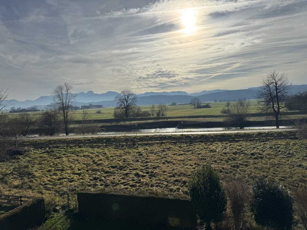 Der Balkon hat einen unverbaubaren Blick auf den Wendelstein. Im Sommer lädt die Mangfall zum Baden ein.