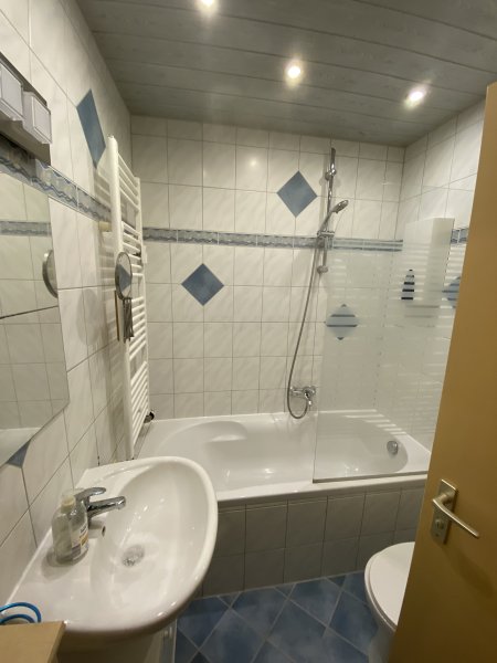 Die Küche ist komplett ausgestattet (Herd, Kühlschrank, Geschirrspüler). Das Bad hat eine Dusche und Badewanne. Im Gang kannst du den Gemeinschaftsschrank mitbenutzen.