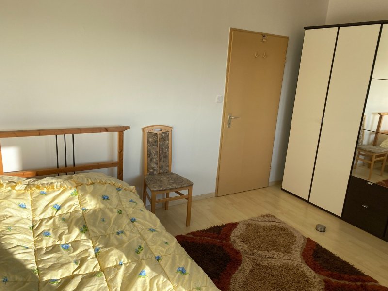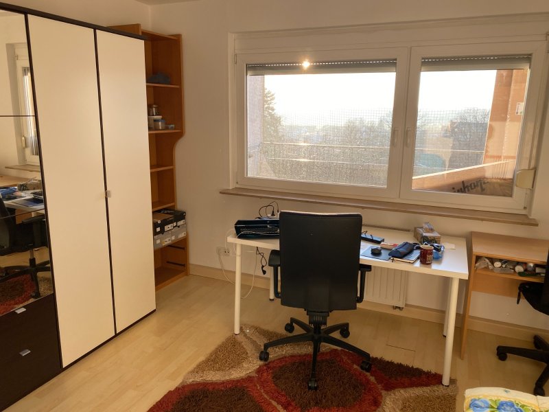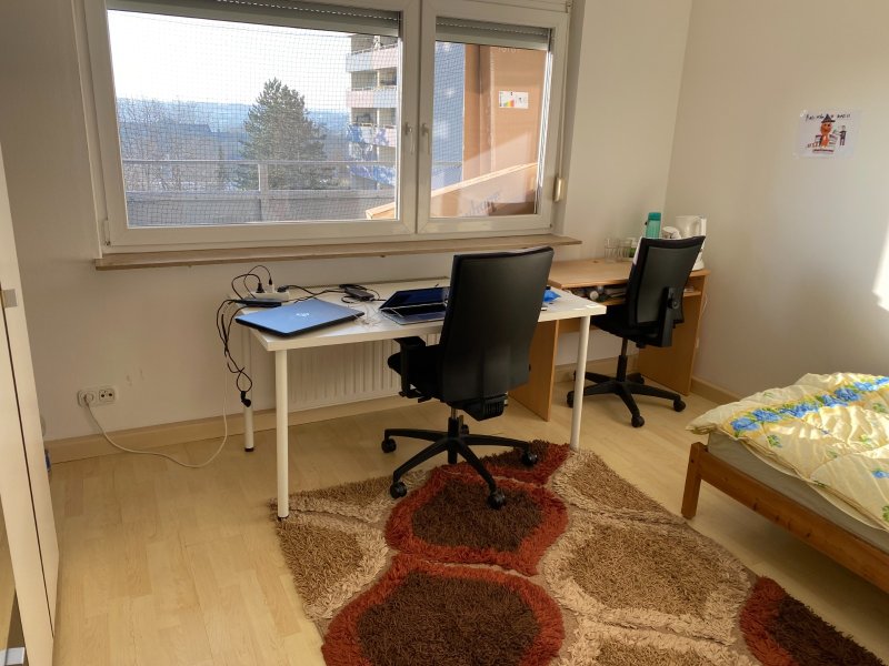 Das Zimmer befindet sich in einer 2-Zimmer Wohnung 53qm im 5. Stock eines gepflegten Mehrstockhauses in Erlangen Bruck. Es hat ein großes Fenster mit Blick ins Grüne und ist nach Süden ausgerichtet, wodurch es immer schön hell ist.