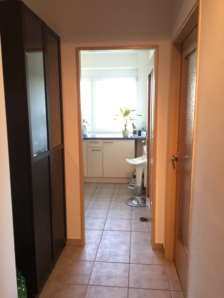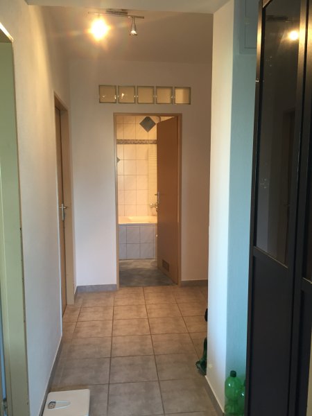 Die Wohnung verfügt über einen Gang, Bad und Küche, welche du mit deinem Mitbewohner teilst.