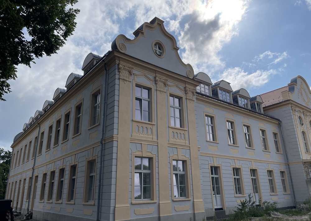 Das denkmalgeschützte Schloss wird zum Wohngebäude mit 43 Suiten und Penthouses mit 1 bis 3 Zimmern zwischen 37 m² und 157 m² saniert. Ca. 2,40 Meter hohe Fenster und Fenstertüren fluten die teilweise über 4,00 Meter hohen Wohnräume mit Tageslicht. Neue Holzfenster bringen ursprüngliche barocke Kreuzteilung zurück. Befestigte Flächen (Freisitze) rund um das Schloss im Erdgeschoss und Wintergärten im Dachgeschoss dienen als Freisitze. Genießen Sie von Ihrer Wohnung den Ausblick auf Schlosspark, Schulhavel, Iserdiek oder den Schwedtsee. Im Kellergeschoss werden Gemeinschaftsräume wie Sauna, Fitness und Wasch-/Trockenraum untergebracht. Im Obergeschoss wird der Große Saal für alle Bewohner erlebbar. 43 oberirdische Pkw-Stellplätze und ein Fahrradhaus auf dem Grundstück sorgen für bequemes Parken und kurze Wege zur Wohnung.