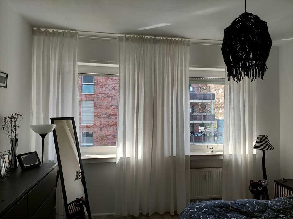 Das Badezimmer hat eine Dusche, neben der Platz für eine Waschmaschine ist. Die Küche ist geräumig und bietet Platz für einen größeren Esstisch. Die Küche selbst bleibt nicht in der Wohnung. Das Wohnzimmer ist sehr groß und durch seine zwei Fenster sehr hell. Hier ist genug Platz für ein Sofa als auch eine Arbeitsecke. Das Schlafzimmer ist ebenfalls hell und großzügig.