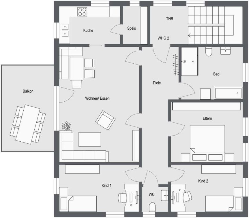 • Großer Wohn- und Essbereich mit abgeschlossener Küche,