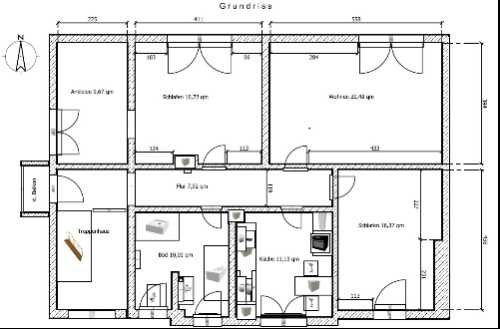 Es handelt sich um das vordere Obergeschoss bestehend aus 3 Zimmern, 1 Ankleide, 1 Kellerabstellraum, 1 Bad inkl. Dusche und Badewanne sowie Badmöbel, 1 Küche inkl. Einbauküche, 1 kleiner Waschraum (zum Stellen der Waschmaschine+Trockner) im Keller sowie 1 kleiner Balkon über der Hauseingangstür (nur vom Treppenhaus aus begehbar)