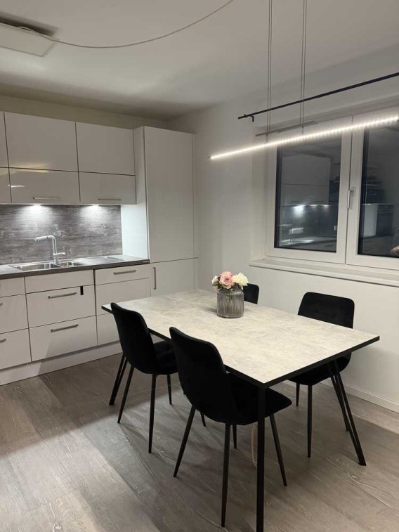 Die Wohnung verfügt über eine moderne Einbauküche mit großem Kühlschrank sowie eine sehr großzügige Terrasse. Es handelt sich um eine schön geschnittene Einzimmerwohnung mit optimaler Raumaufteilung.