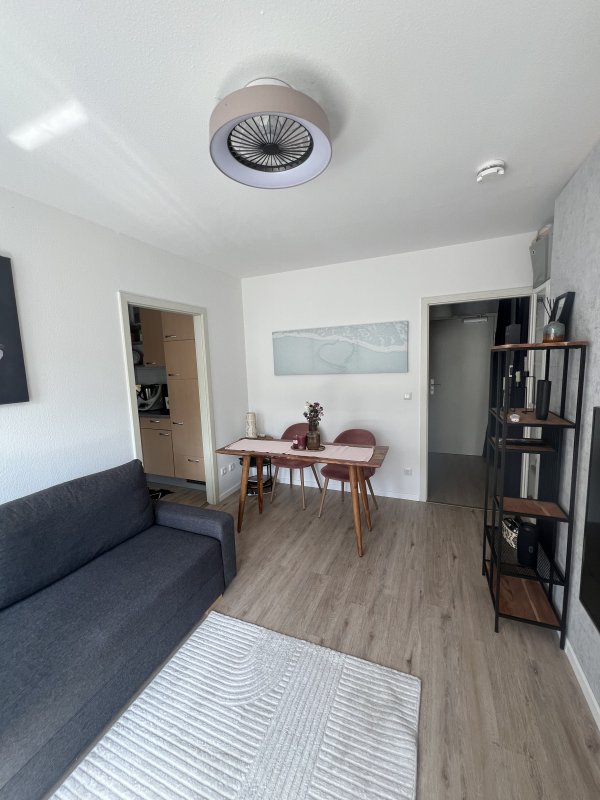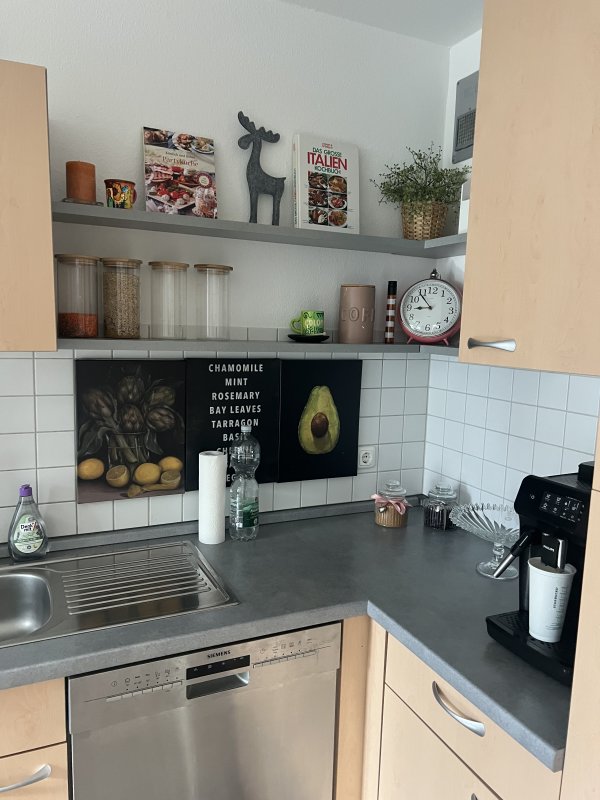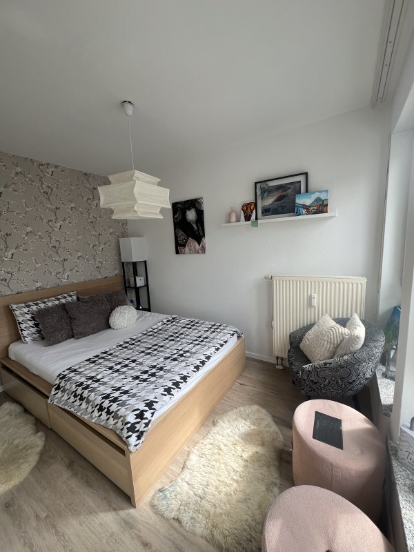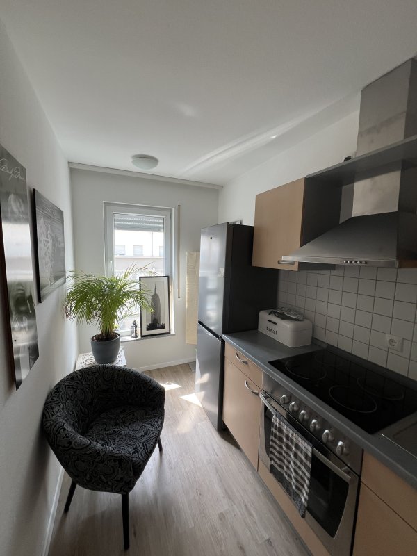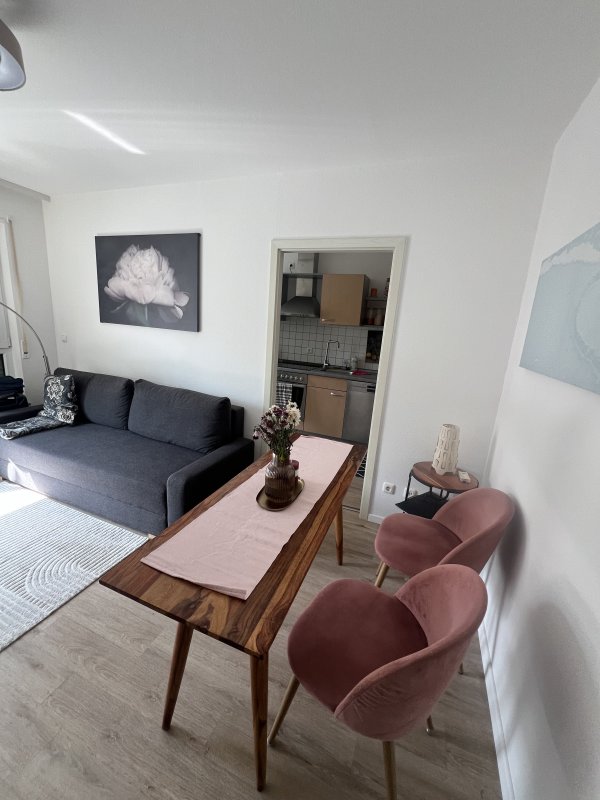 Die vollständig möblierte Wohnung eignet sich ideal für Wohnen auf Zeit. Sie ist komplett ausgestattet mit Bett, Schrank, Esstisch, Stühlen sowie einer voll eingerichteten Küche inklusive Geschirr und Besteck. Ein großer Balkon, eine Waschmaschine sowie schnelles WLAN ist vorhanden.