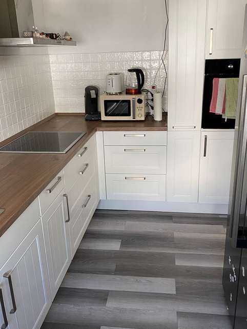 Neue Küche kann kostentechnisch übernommen werden. Alle elektronischen Geräte haben 5 Jahre Garantie. (Ohne Kühlschrank)