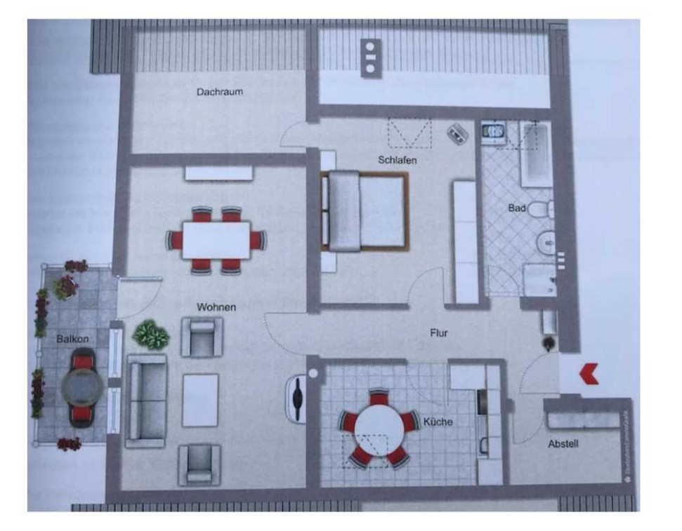 Wir vermieten ab dem 01.02.2026 unsere Dachgeschosswohnung in 87727 Babenhausen mit folgender Ausstattung: