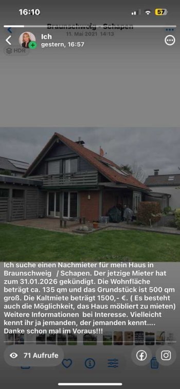 Dieses attraktive Einfamilienhaus mit ca. 130 m² Wohnfläche und 5 Zimmern befindet sich in guter Lage in Braunschweig-Schapen. Das Haus wurde mit normaler/hochwertiger Ausstattung erbaut und verfügt über 2 Vollgeschosse. Ein Garten (Grundstücksfläche 501 m²) mit Pool und zwei Terrassen lädt zum Verweilen ein. Zwei Carports bieten Platz für Ihr Fahrzeuge. Ein Gäste-WC mit Dusche und ein Vollbad mit Badewanne erhöhen den Wohnkomfort. Eine Einbauküche ist bereits vorhanden und ein Kachelkamin sorgt für gemütliche Wärme in kalten Wintertagen. Haustiere sind nach Absprache möglich. Das Haus wird ab dem 01.03.2026 verfügbar sein.
