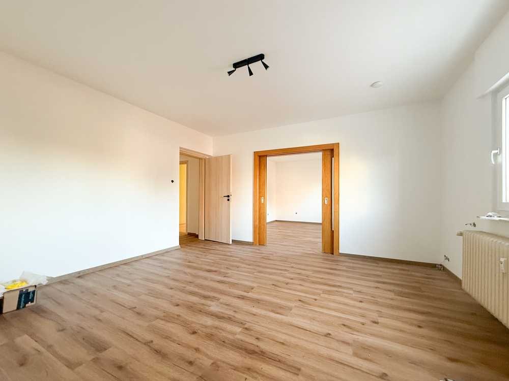 Das Wohnzimmer bildet den Mittelpunkt der Wohnung und bietet durch seine Größe und Helligkeit vielfältige Gestaltungsmöglichkeiten. Daran angrenzend befindet sich ein weiteres Zimmer, das als Durchgangszimmer ausgeführt ist. Dieses kann ideal als Arbeitszimmer, Essbereich, Schlafzimmer oder zusätzliches Wohnzimmersegment genutzt werden. Durch seine Anbindung erweitert es den Wohnbereich und sorgt für eine flexible Raumnutzung.