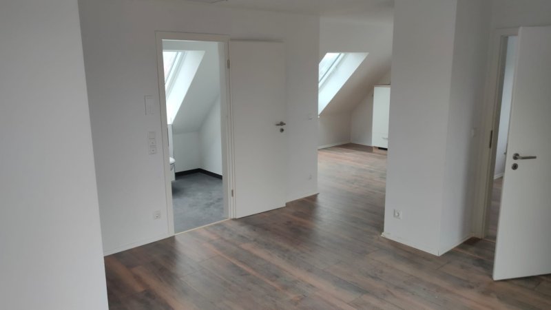 Helle zwei Zimmer-Wohnung, im Jahr 2023 im Dachgeschoss neu ausgebaut. Die Wohnung ist ausgestattet mit einer Einbauküche, einem modernen Badezimmer sowie einem Südbalkon mit Zugang vom Wohnzimmer aus.