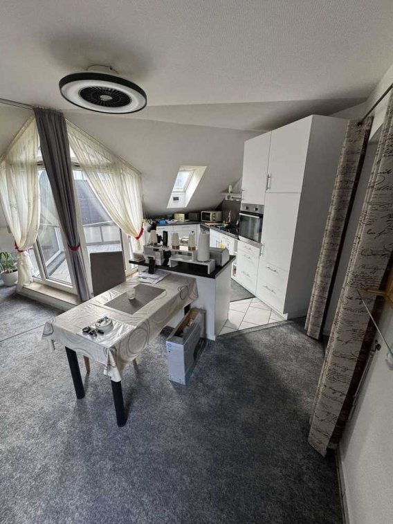 Helle 2-Zimmer-Dachgeschosswohnung in ruhiger Wohnlage von Pfinztal-Wöschbach. Die Wohnung befindet sich im obersten Geschoss eines gepflegten Mehrfamilienhauses und verfügt über zwei geschützte Loggen, ein Tageslichtbad sowie einen großzügigen Wohn- und Essbereich.