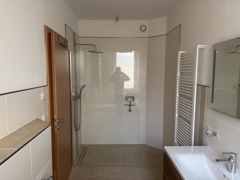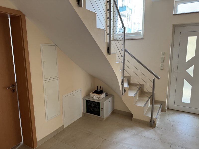 Kontrollierte Wohnraumlüftung, Garten nach Absprache, Terrasse 16 m/2 mit elektrischer Markise, Kaminofen, Küche, Bar, Badmöbel möbliert, kein Parkplatz auf dem Grundstück, alle Böden gefliest, Verkabelung für Netzwerk