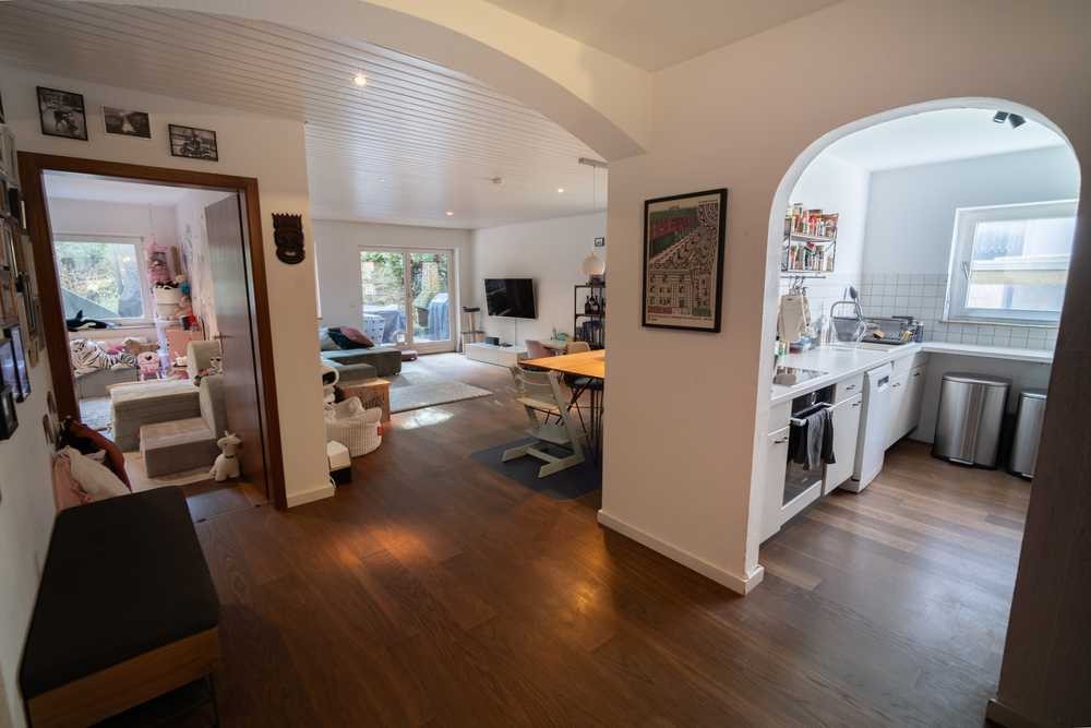 96 m² Wohnfläche verteilen sich auf 3,5 Zimmer. Das Herzstück ist der große offene Wohn- & Essbereich mit direktem Zugang zu Terrasse und Garten. Dazu kommen ein großzügiges Schlafzimmer, ein Kinderzimmer, Bad mit Dusche und Wanne, eine praktische Abstellkammer und ein weiteres (Gäste-)WC.