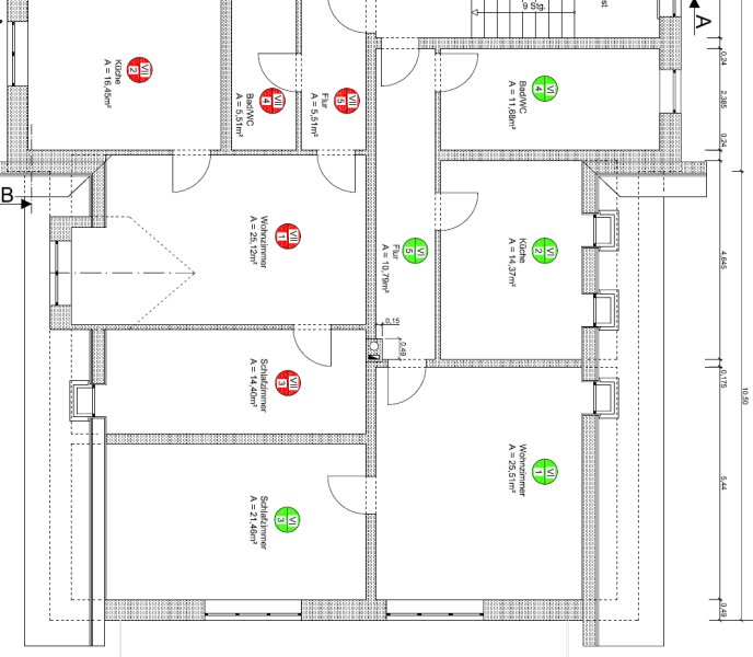 Im Grundriss betrifft es die grün markierte Wohnung VI.