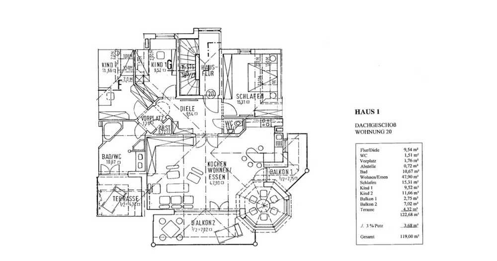Die Wohnung hat zwei Balkone + eine kleine Dach-Terasse.