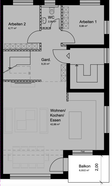 • zwei Zimmer als Homeoffice-Büros nutzbar