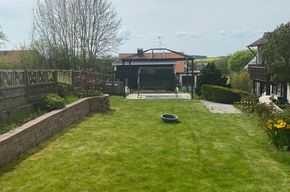 Diese helle und geräumige 5-Zimmer-Wohnung mit ca. 130,6 m² Wohnfläche bietet viel Platz und Komfort. Sie befindet sich im Erdgeschoss eines 2-Parteien-Hauses und verfügt über zwei Terrassen sowie ca. 280 m² Garten (allein zu nutzen), der zum Entspannen einlädt. Die Wohnung ist mit einer modernen Innenausstattung versehen und wird ab dem 01.03.2026 verfügbar sein. Vom geräumigen Eingangsbereich gelangt man in die helle, lichtdurchflutete Wohnung mit einem großen offenen Dielenbereich. Direkt von der Wohnungstüre aus ist der Blick ins Grüne gegeben. Die Wohnung verfügt über eine separate Garderobe und ein modernes Gäste-WC (ca. 3,1 m²). Der Wohn- Essbereich mit offener Küche (weiß gefliest) besticht durch seine Helligkeit und Offenheit (ca. 22,4 m²). Das Wohnzimmer mit ca. 23,9 m² kann man durch zwei Türen betreten. Von dort aus hat man Zugang zur ersten Terrasse mit ca. 13,2 m² und den Garten. Eines der drei Schlafzimmer hat eine breite Fensterfront mit Blick ins Grüne. Die beiden anderen Schlafzimmer sind über einen separaten Trakt erreichbar sowie auch das neue, moderne Bad. Das Elternschlafzimmer mit ca. 26,6 m² liegt sehr ruhig, das zweite Schlafzimmer verfügt über eine kleine uneinsehbare Terrasse - ebenfalls mit Zugang zum Garten. Nichts an der Wohnung wirkt beengt. Die Fußlaufzonen sind überall gleich mit hellem grau/beigen Laminat ausgelegt. In Bad und Gäste-WC sind jeweils grau-beige Fliesen sowie moderne viereckige Waschbecken, das Bad schmückt ein großer Spiegel über eine ganze Wand. Der Fliesenboden im Eingangsbereich wurde erhalten und ist durch seinen Vintage-Look wieder angesagt und modern.