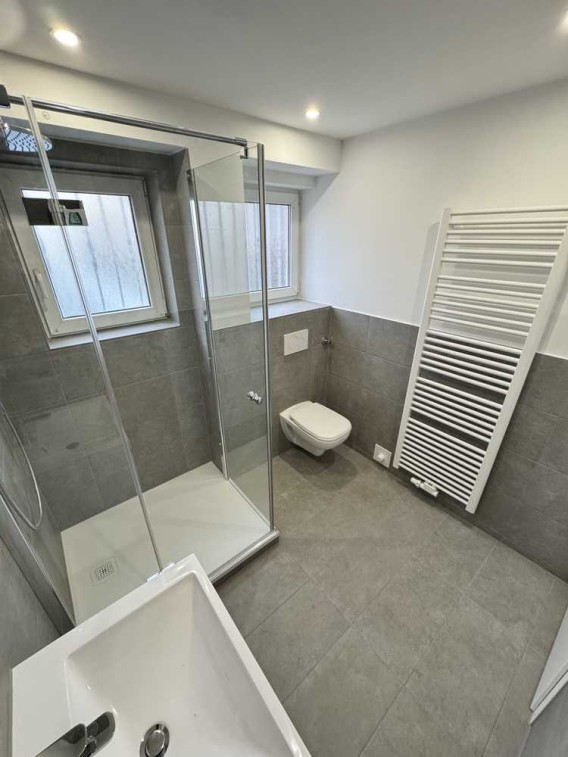 • Neues Bad mit Regendusche, Waschbecken mit Unterschrank & Fußbodenheizung
