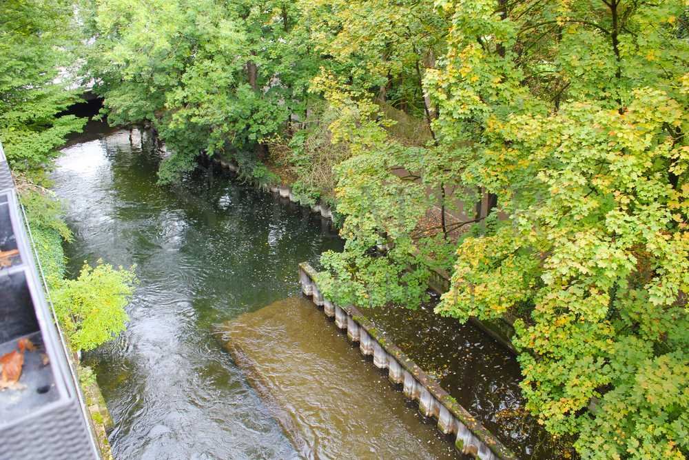 Eine massive Eichentreppe führt Sie in das 3. Obergeschoss, das den Mittelpunkt der Wohnung bildet. Der großzügige Wohn- und Essbereich beeindruckt durch seine Helligkeit und den Zugang zu einem schönen Westbalkon. Große Glastüren öffnen den Raum und schaffen ein lichtdurchflutetes Ambiente. Gegenüber befindet sich die offene Küche, ausgestattet mit einer hochwertigen Einbauküche (u. a. Bora-Kochfeldabzug) mit weißen Fronten und schwarzer Steinarbeitsplatte. Von hier aus gelangen Sie auf einen weiteren überdachten Balkon mit herrlichem Blick ins Grüne und auf den Bachlauf.