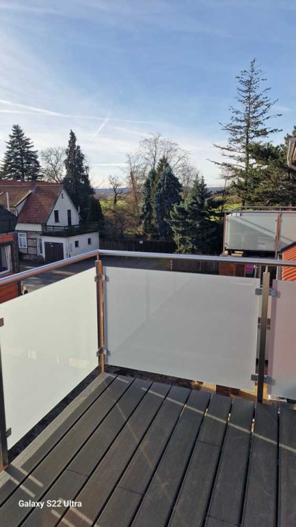 Zu der Wohnung gehört ein großzügiger Balkon mit tollen Blick über den Dächern des Dorfes.