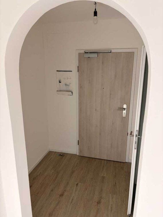 Die Wohnung befindet sich gerade in der Endmontage. Waschbecken, Wandheizung, Toilette und Duschkabine sowie Steckdosen, Lichtschalter etc. fehlen daher noch.