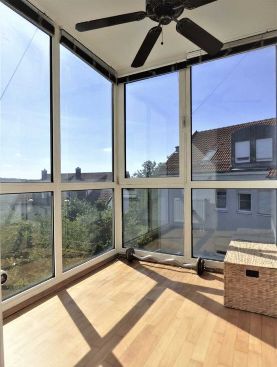 Das Highlight dieser Wohnung ist eine Ecke mit bodentiefen Fenstern, die als Wintergarten genutzt