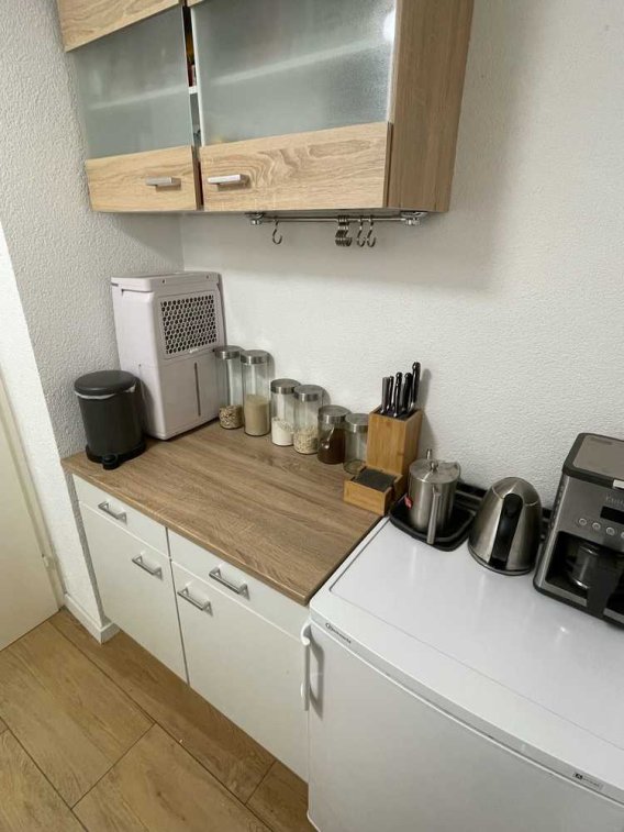 Schöne 2-Zimmerwohnung mit hochwertigem Fliesenbelag in Holzoptik mit kleinem Bad und kleiner Küche.