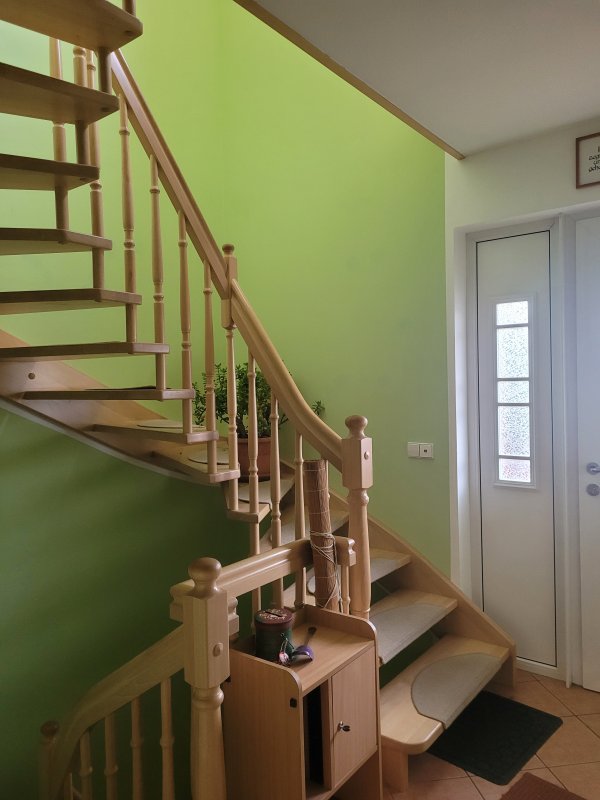 Die im OG gelegene Wohnung ist über eine breite Wendeltreppe zu erreichen. Beide Wohnungen sind separat voneinander nutzbar (separate Wohnungseingangstüren).
