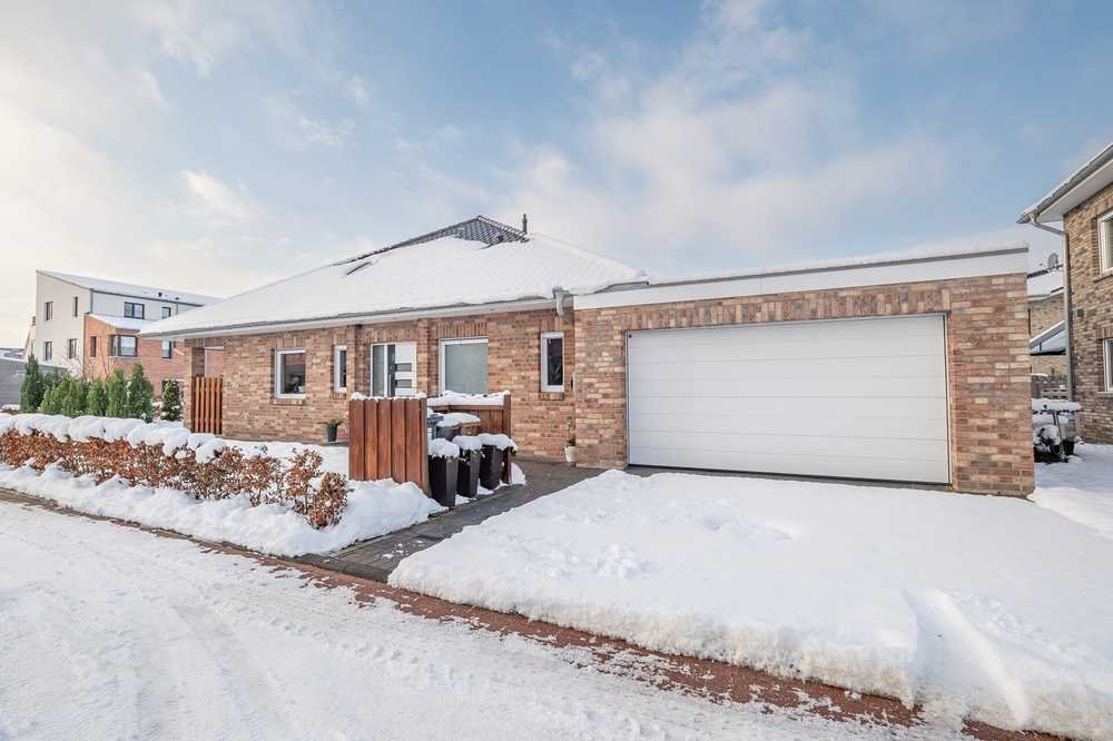 Ergänzt wird das Raumangebot durch einen Hauswirtschaftsraum mit Anschlüssen für Waschmaschine und Trockner sowie zusätzlichem Stauraum. Von hier aus besteht ein direkter Zugang zur geräumigen Garage mit elektrischem Garagentor und einem weiterem Außenzugang, sodass man bei schlechtem Wetter bequem und trocken ins Haus gelangen kann.