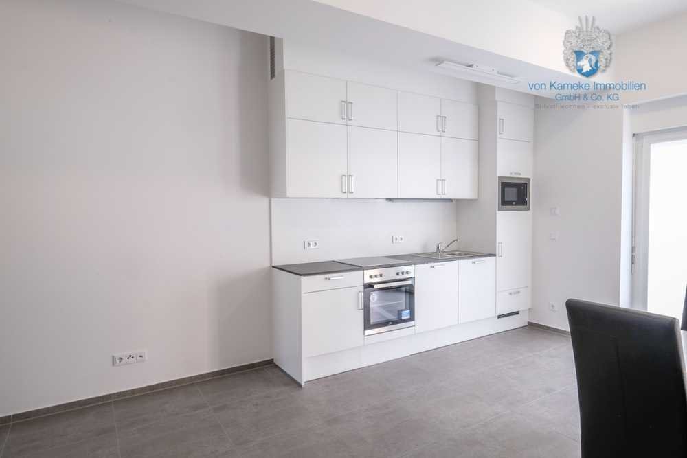 - Bereits eingebaute, hochwertige Einbauküche, inkl. Kühlschrank, Cerankochfeld und Keramik-Spüle