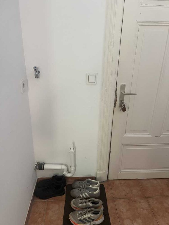 Die Wohnung verfügt über eine einfache Einbauküche sowie einen dazugehörigen Schrank, die in der Wohnung verbleiben.