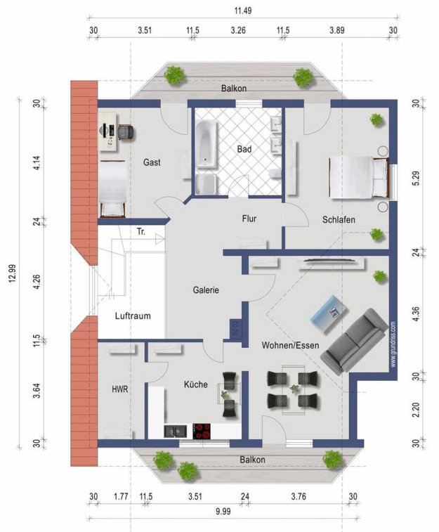 - Drei Balkone mit erneuertem Geländer